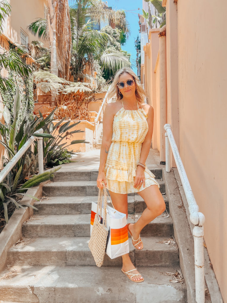 This Majorelle Baker Mini Dress in yellow tie dye is a must for this Summer’s wardrobe! Its so comfortable and flowy and long enough for taller girls. I paired it with some fun rope sandals to tie in the tassel tie feature in the back. Wearing a Size Medium, but I think I could have…